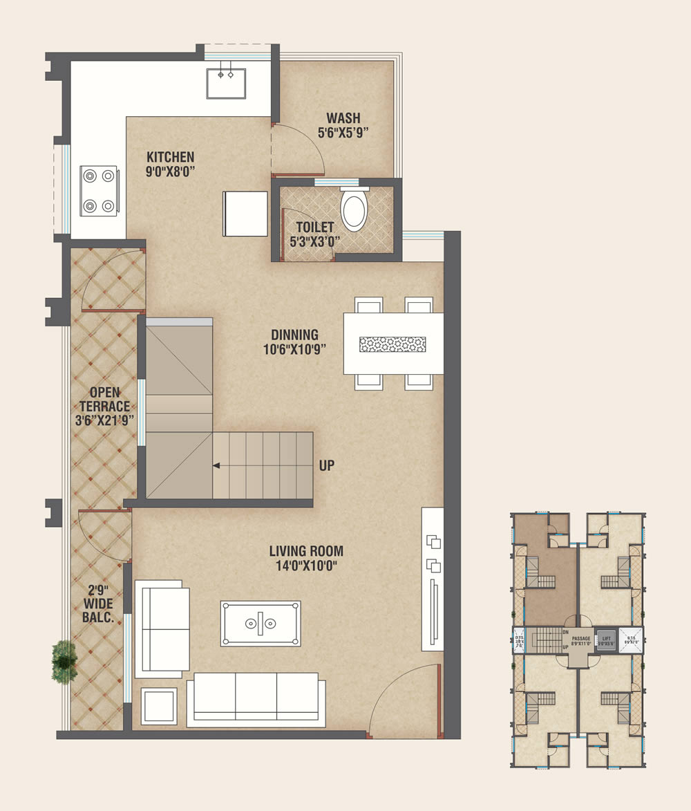 1 BHK SBA - 740.00 SQ.FT.